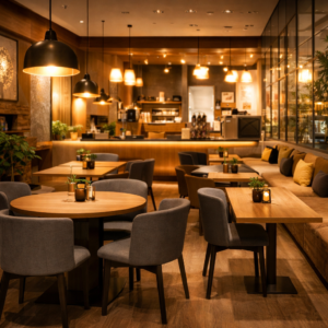 For cafes, we think about how seating arrangements, atmosphere, and psychology will increase the amount of time customers stay and how much.