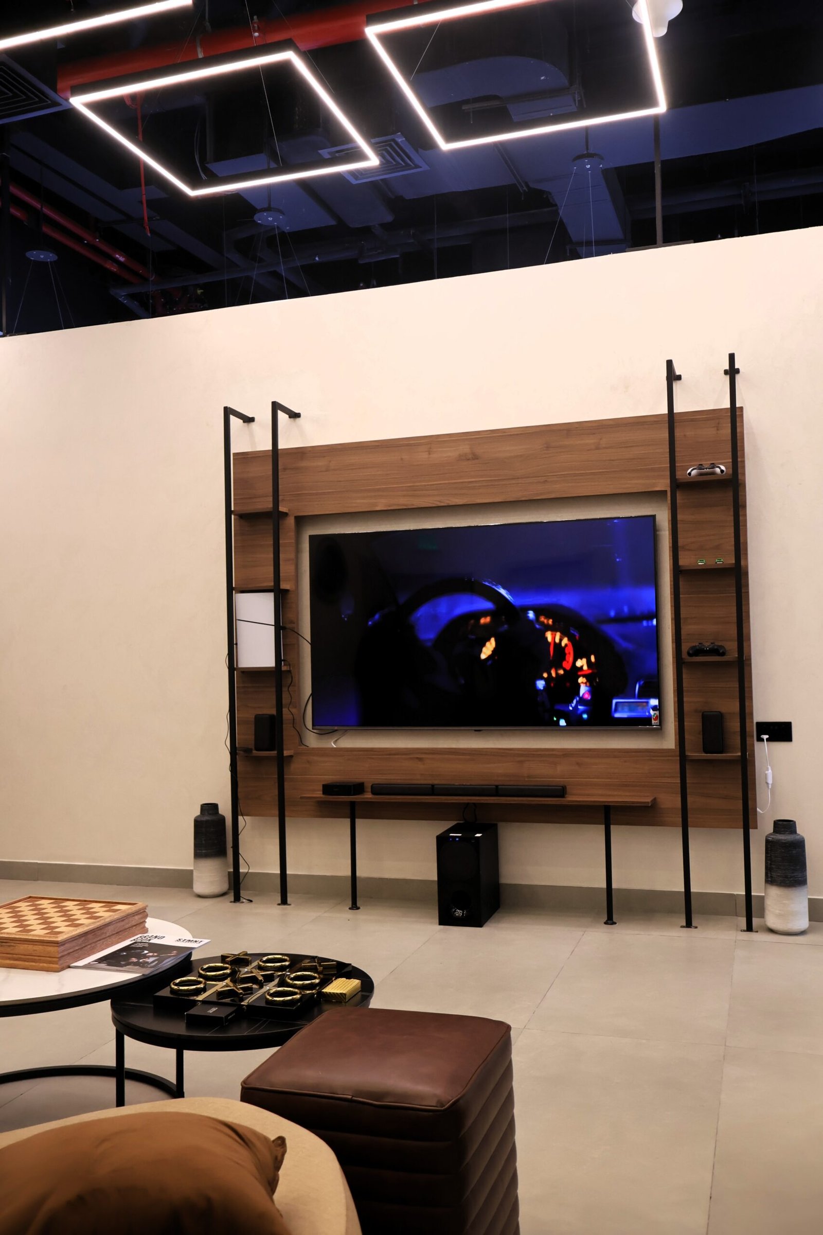 Modern masculine design with premium materials, ambient lighting, and refined detailing.